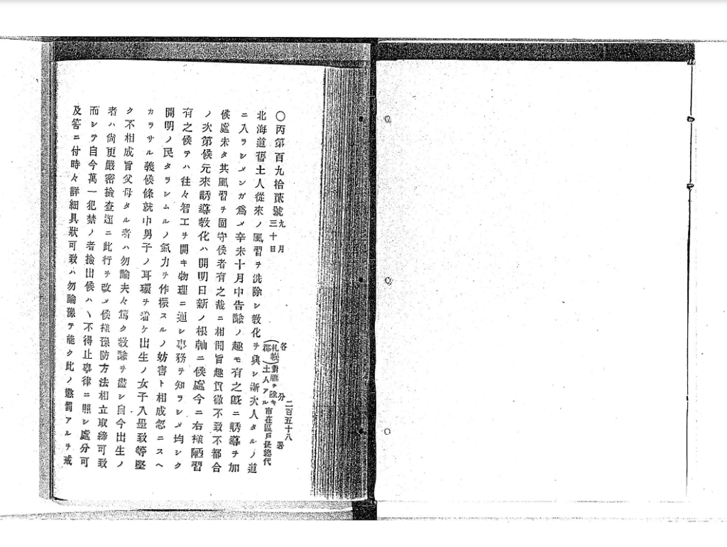 現代語訳・旧土人耳環及入墨ヲ禁ス(1876年)